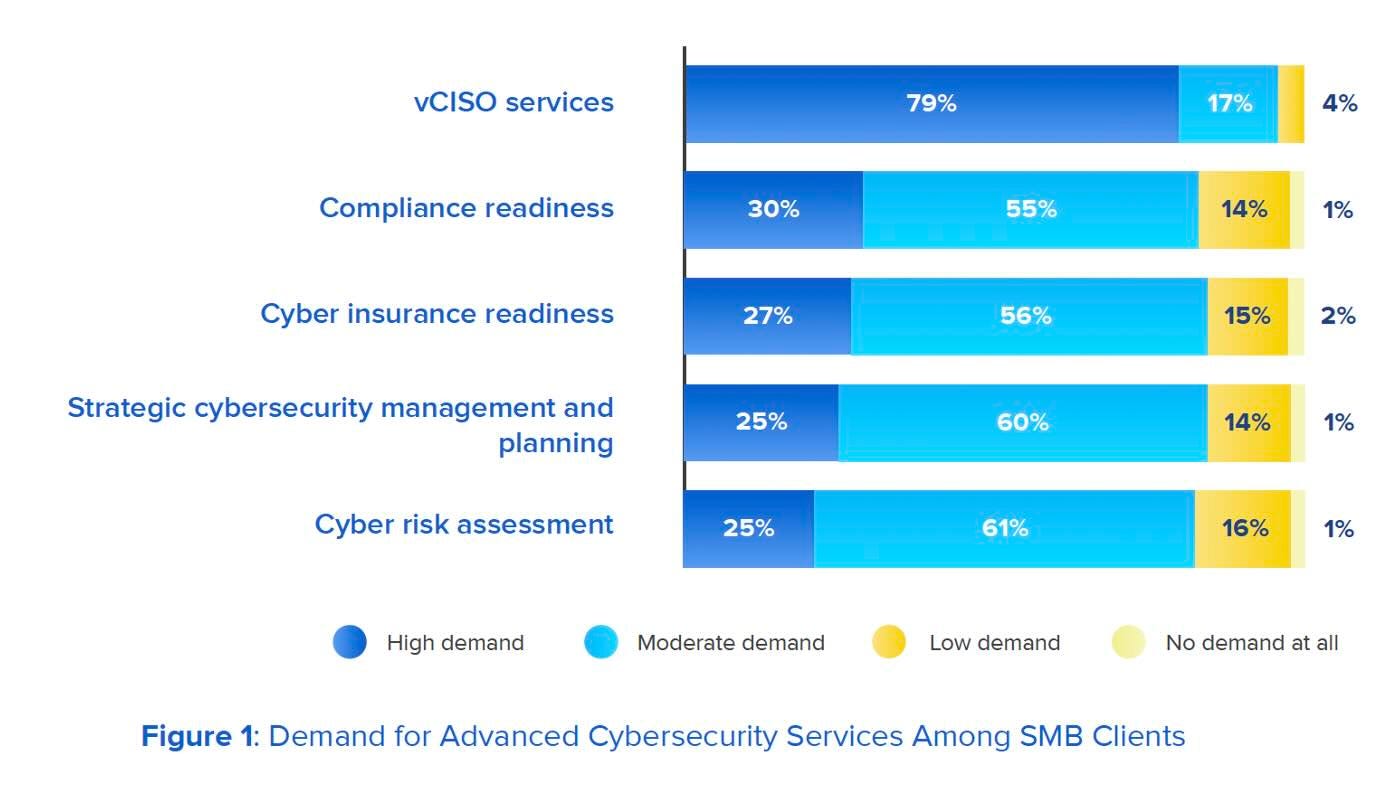 Further survey data reveals why so many people are capitalizing on those lower entry barriers. SMBs, who want advanced security services of all kinds in big numbers, want vCISO services most of all: